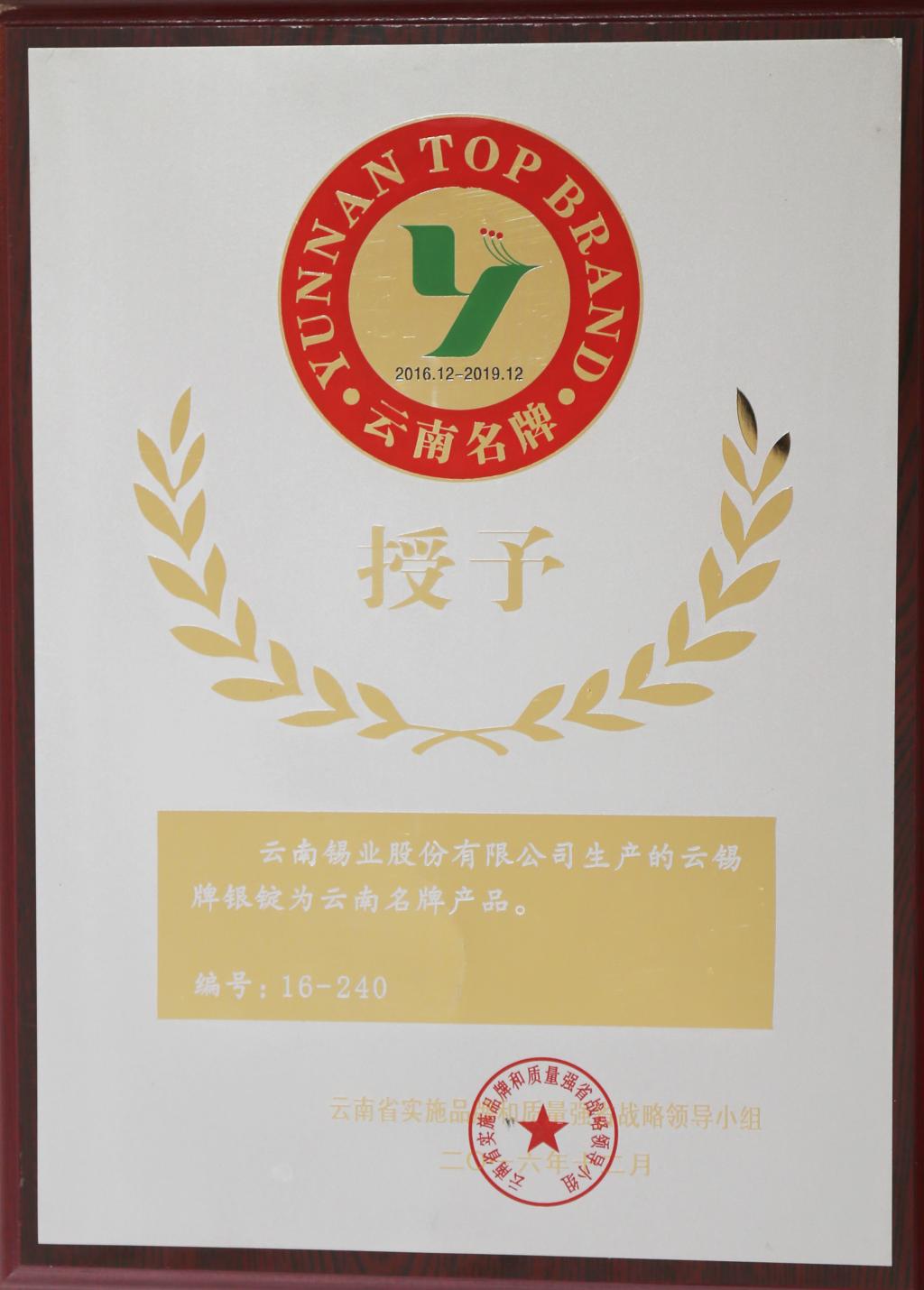 云錫牌銀錠為云南名牌產(chǎn)品