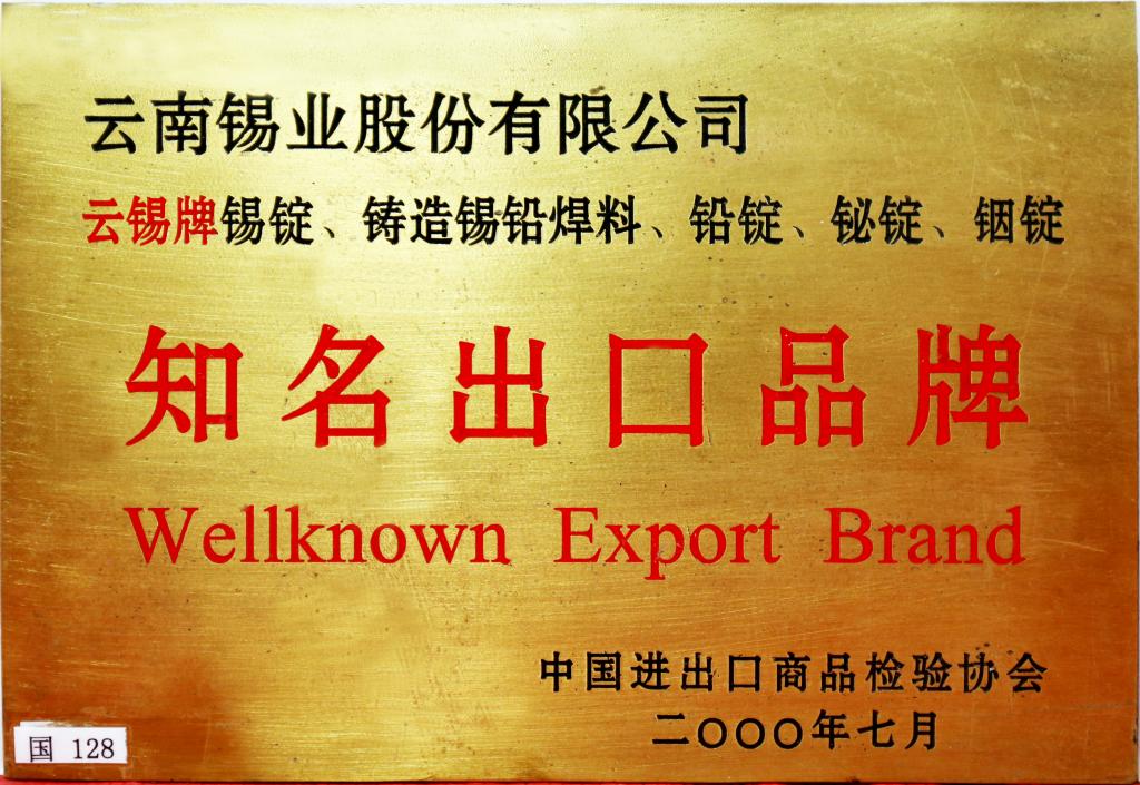 云錫牌錫錠、鑄造錫鉛爆料、鉛錠、鉍錠、銦錠為中國知名出口品牌