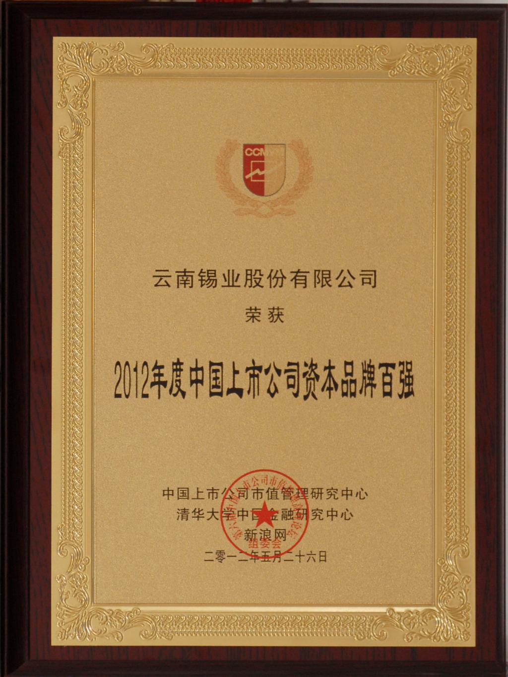 榮獲“2012年度中國上市公司資本品牌百強(qiáng)”