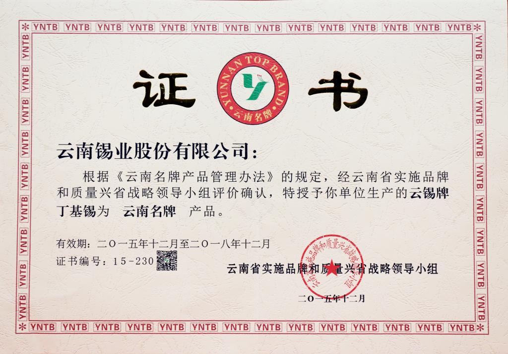 云錫牌丁基錫為云南名牌產品
