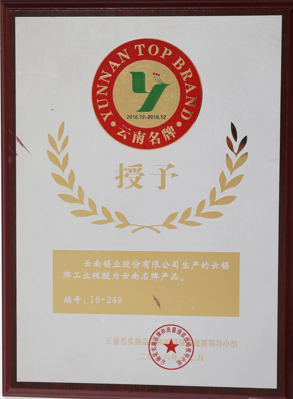 云錫牌工業硫酸為云南名牌產品
