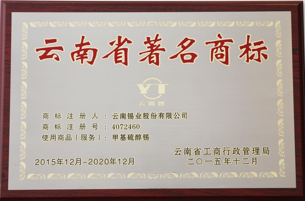 甲基硫醇錫為云南省著名商標