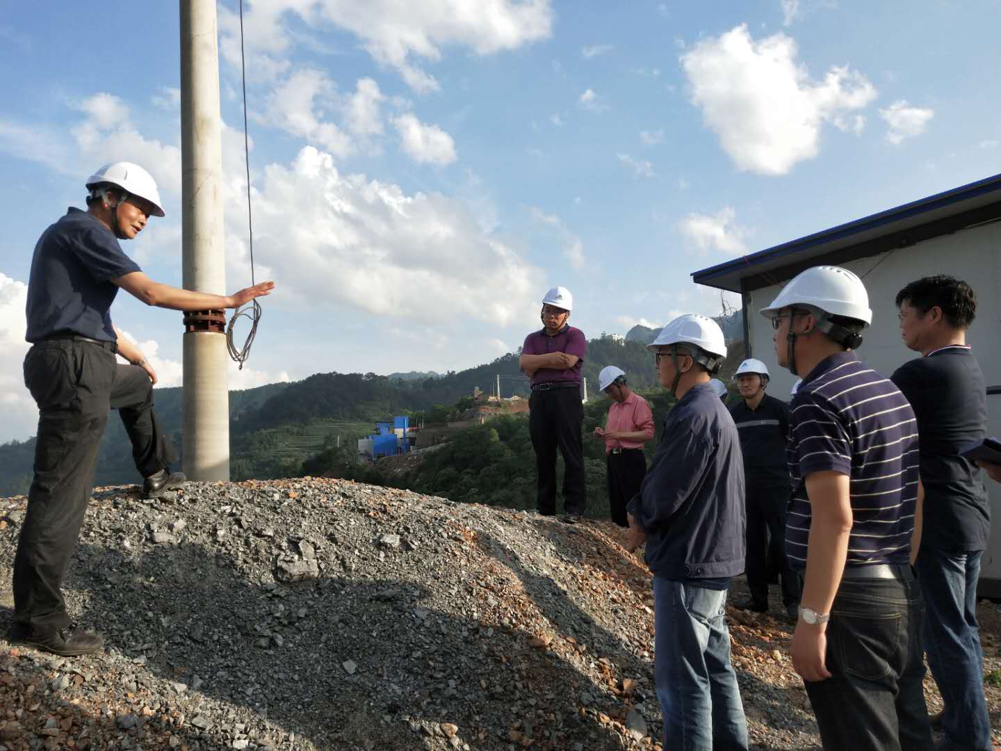 6月1日,省應(yīng)急廳執(zhí)法處處長歐雄、非煤礦山處副處長李曉晨攜專家組一行到華聯(lián)鋅銦公司開展尾礦庫專項執(zhí)法檢查及指導(dǎo)公司尾礦庫風(fēng)險隱患排查治理工作,文山州、馬關(guān)縣應(yīng)急管理局相關(guān)人員、公司副總經(jīng)理李品福及相關(guān)部門人員參加檢查。