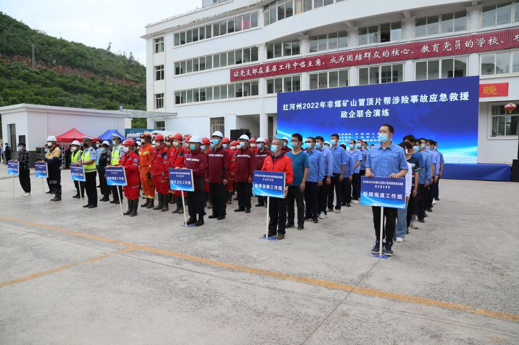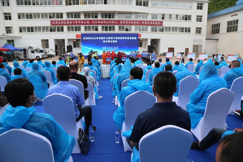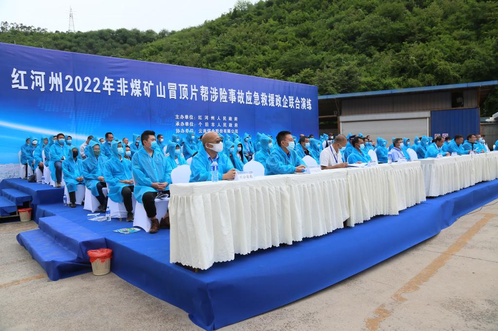 6月23日,由紅河州人民政府主辦、個舊市人民政府承辦、云南錫業(yè)股份有限公司協(xié)辦的紅河州2022年非煤礦山冒頂片幫涉險事故應(yīng)急救援政企聯(lián)合演練在大屯錫礦舉行。認(rèn)真學(xué)習(xí)貫徹落實習(xí)近平總書記關(guān)于安全生產(chǎn)重要論述,推動各級應(yīng)急管理責(zé)任落實,壓實安全生產(chǎn)責(zé)任,切實提高紅河州非煤礦山事故應(yīng)急救援能力。紅河州人民政府副秘書長楊克平,紅河州應(yīng)急管理局局長張錳,錫業(yè)股份黨委副書記、董事長、總經(jīng)理劉路坷,錫業(yè)股份黨委委員、副總經(jīng)理王建偉,錫業(yè)股份黨委委員、大屯錫礦黨委書記、經(jīng)理王壽安等出席演練活動。