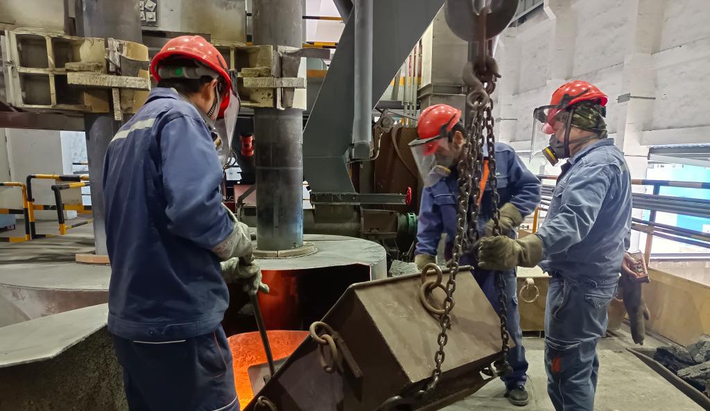 技術(shù)攻關(guān),鋁渣變身優(yōu)質(zhì)料。技術(shù)操控和安全環(huán)保是電爐工序挖潛鋁渣的“兩個(gè)保障”。為將結(jié)存含錫鋁渣及時(shí)轉(zhuǎn)換成錫產(chǎn)品,車(chē)間與工序積極圍繞挖潛增效出主意、想辦法、定措施,開(kāi)展“錫冶煉新電爐系統(tǒng)處理鋁渣試驗(yàn)研究”技術(shù)攻關(guān),探尋提升電爐鋁渣處理能力條件,進(jìn)一步降低錫中間品的積存,減少中間品管理費(fèi)用。黨員帶頭成立攻關(guān)小組,認(rèn)真查閱資料,分析生產(chǎn)配料、控制和運(yùn)行情況,經(jīng)過(guò)模擬小試,摸清處理鋁渣溫度、氣氛、時(shí)間等控制參數(shù)以及不同電流對(duì)渣含錫、金屬平衡的影響,成功投入使用,將1600余噸鋁渣變?yōu)榱藘?yōu)質(zhì)錫原料。