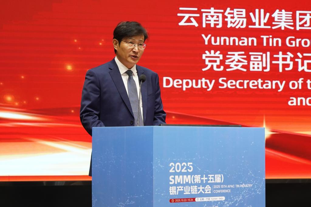 10月22日至24日,2025SMM(第十五屆)錫產(chǎn)業(yè)鏈大會在個舊舉行,本次大會由上海有色網(wǎng)主辦,錫業(yè)股份特邀協(xié)辦。云錫控股公司黨委副書記、副董事長、總經(jīng)理韓守禮出席大會并致開幕詞。錫業(yè)股份黨委書記、董事長劉路坷參加開幕式并與多家企業(yè)與會代表交流。