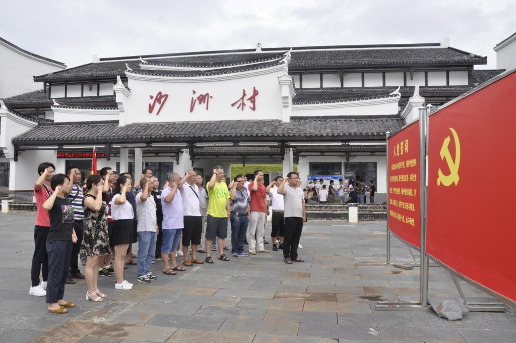 隨后,在沙洲村廣場前,全體黨員莊嚴地舉起右手,面向黨旗重溫入黨誓詞。