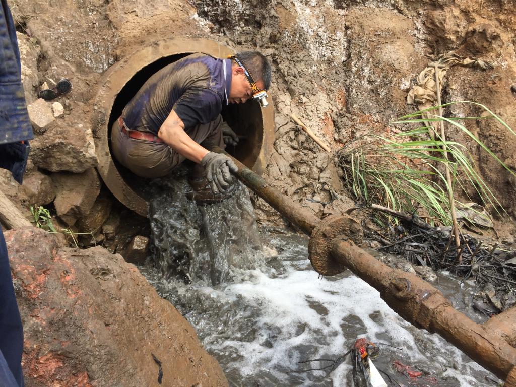 當(dāng)天上午,在專業(yè)人員先用風(fēng)機(jī)在暗溝中間通風(fēng)口處灌風(fēng)2個(gè)多小時(shí)和確認(rèn)安全的前提下,10名共產(chǎn)黨員帶上工具,在工段長(zhǎng)的帶領(lǐng)下,依次連爬帶跪地進(jìn)入暗溝。由于暗溝空間狹窄,只能單人或爬、或跪、或蹲地作業(yè),加之暗溝中安裝有一根生產(chǎn)水管,增加了清理難度。清理過(guò)程中,污水濕透了大家的全身衣服,但沒有一個(gè)黨員怕苦叫累,前面的黨員將堵塞物依次傳給后面的,一點(diǎn)點(diǎn)地向前推進(jìn),幾名身體殘疾的黨員也積極投入到清理工作中。